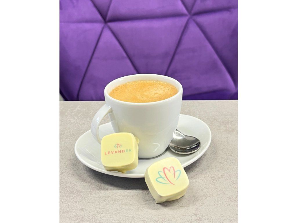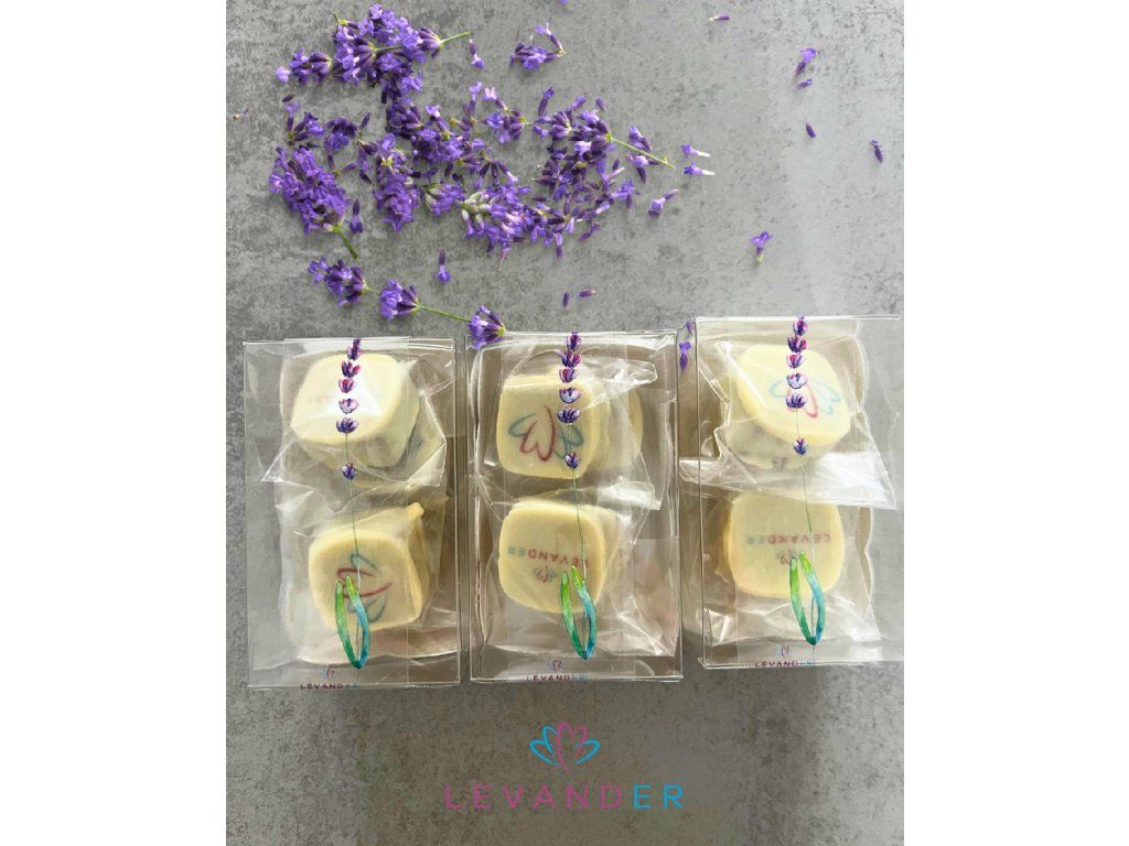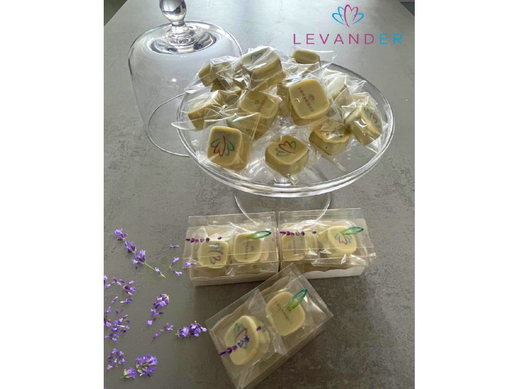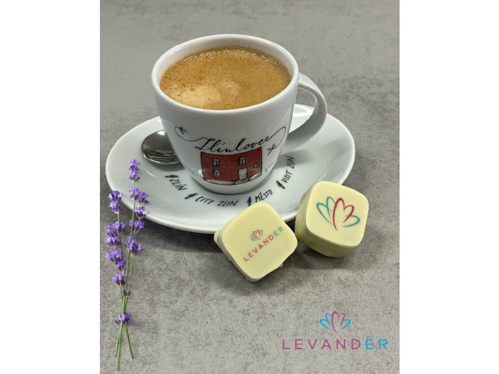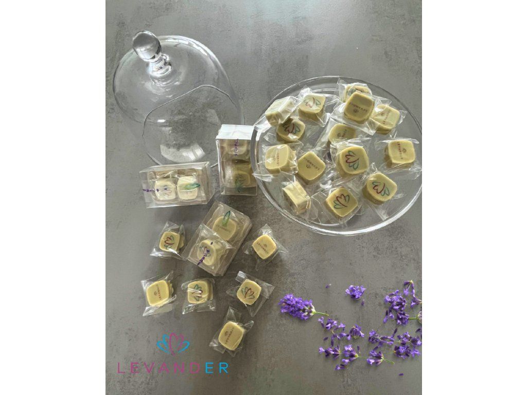 Mléčná belgická čokoláda s delikátní příchutí levandule a polevou z bílé čokolády