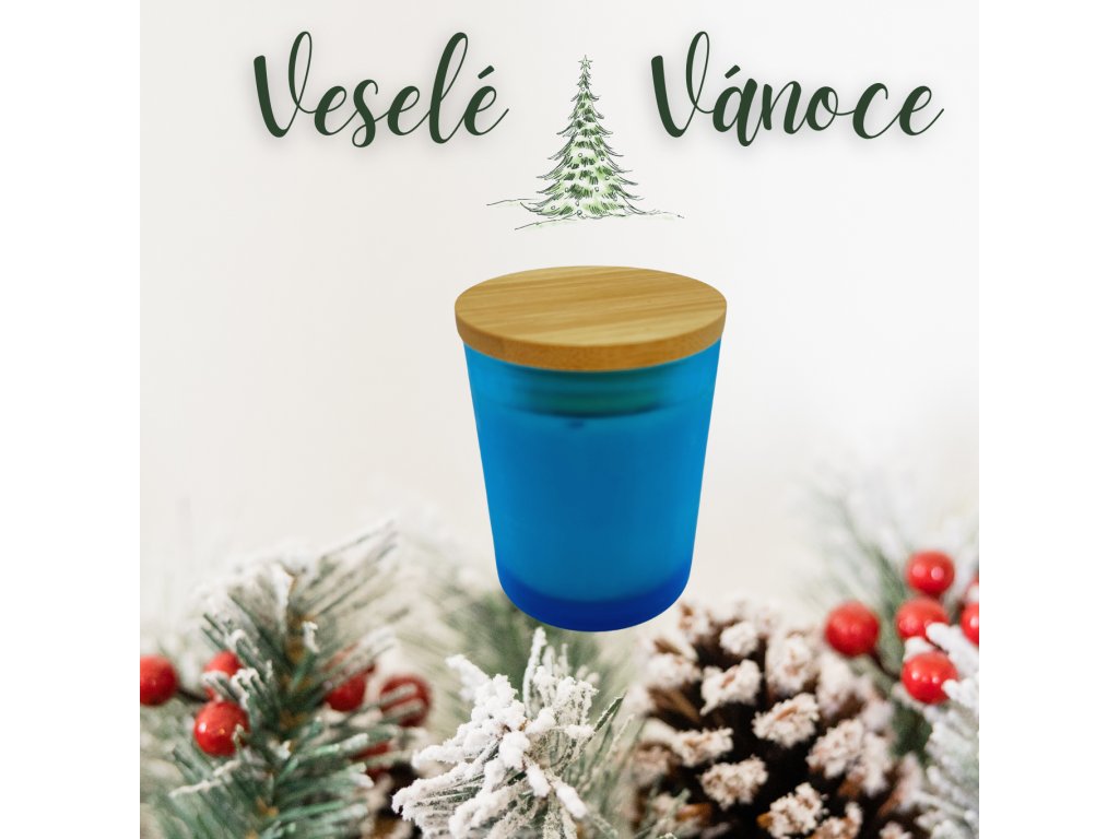 Sójová svíčka v modrém skle s bambusovým víčkem s vůní mandarinky, limetky a bergamotu.